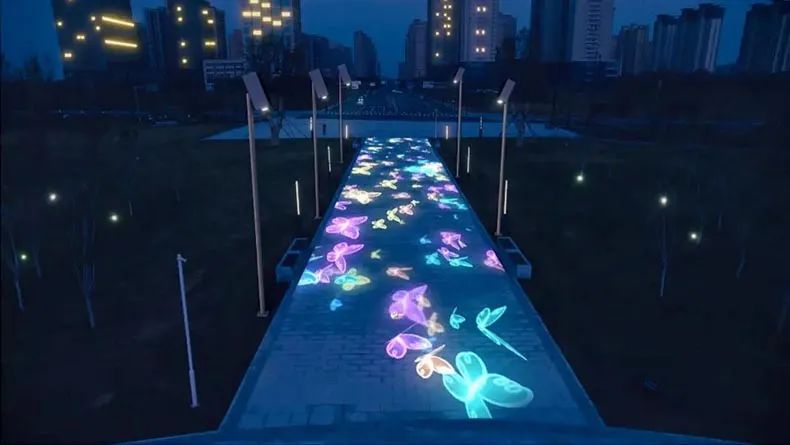 在智慧化建設的背景之下,通過將地面互動投影融入其中,打造出了具有互動元素的地面投影照明項目,使得公園已成為夜間充滿活力氛圍的熱門打卡地。