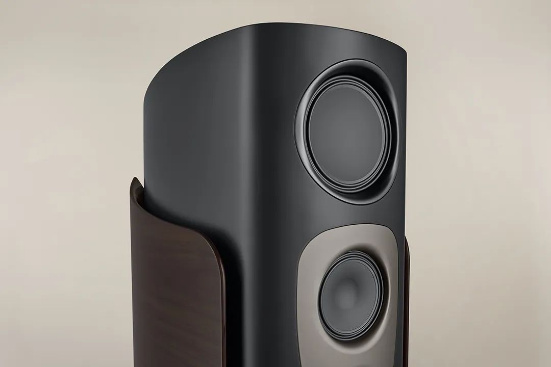 整個箱體呈圓形,外觀幾乎渾然一體,這得益于其煙灰色的表面處理,進一步凸顯了揚聲器的優雅與平滑。箱體頂部的弧形上翹設計,為REFERENCE GS Edition注入了活力與動感。其側翼獨特的環繞效果,為用戶帶來前所未有的聽覺體驗。高光漆實木貼面與絲質亞光機身交相輝映,形成了強烈的視覺對比,進一步提升了整體的美感。