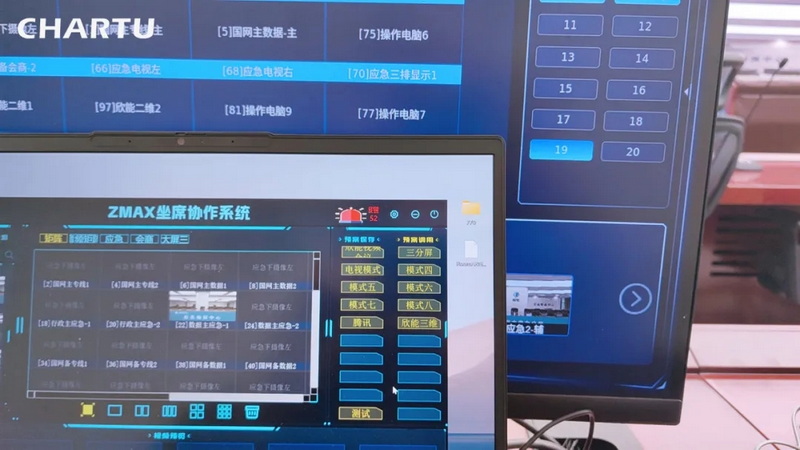 在本項目中,CHARTU長圖根據用戶需求,在指揮中心內建設一套ZMAX光纖坐席協作管理系統,對當地應急指揮中心的4大會議區域10臺服務器進行統一管理與控制。