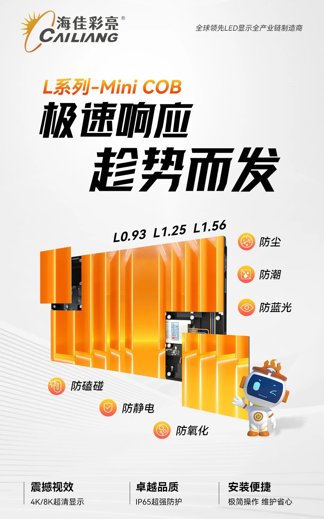 2024年,COB市場客戶需求不斷增加并向高端化趨勢發(fā)展,應(yīng)用于應(yīng)急指揮、智能監(jiān)控智慧城市以及大數(shù)據(jù)中心等。海佳集團(tuán)依據(jù)LED顯示屏行業(yè)市場變化,迅速布局COB MiniLED產(chǎn)品,通過全國五大區(qū)現(xiàn)貨供應(yīng),逐步聚力釋放推向市場,達(dá)到各省區(qū)出貨快速增長。