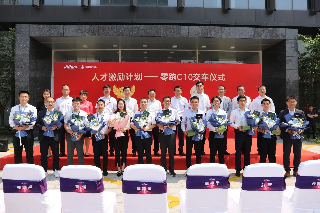 5月15日,大華股份人才激勵(lì)計(jì)劃—零跑C10交車(chē)儀式圓滿(mǎn)舉行。大華股份董事長(zhǎng)兼總裁傅利泉、執(zhí)行總裁趙宇寧攜公司OMT成員為領(lǐng)軍專(zhuān)家與奮斗之星代表送上車(chē)鑰匙和鮮花。