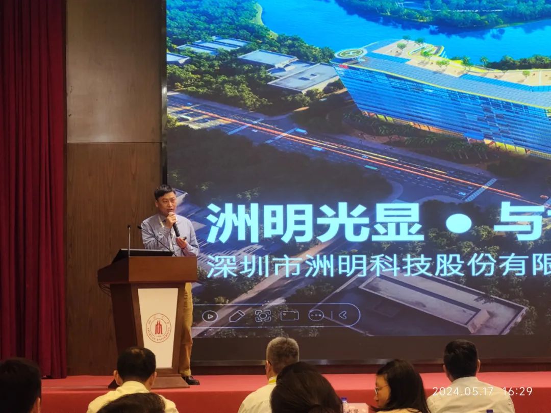 丁志剛以《洲明光顯·以世界同行》為主題,向與會嘉賓們詳實介紹了洲明科技的發展歷程,以及光顯賦能教育的具體案例。他首先用五個關鍵詞概況洲明,并指出洲明聚焦科研實力、產品設計、智造規模、內容創新的核心優勢。