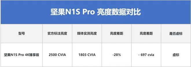 據快科技實測數據,堅果N1S Pro 4K至臻版的亮度實測數據顯示為1803