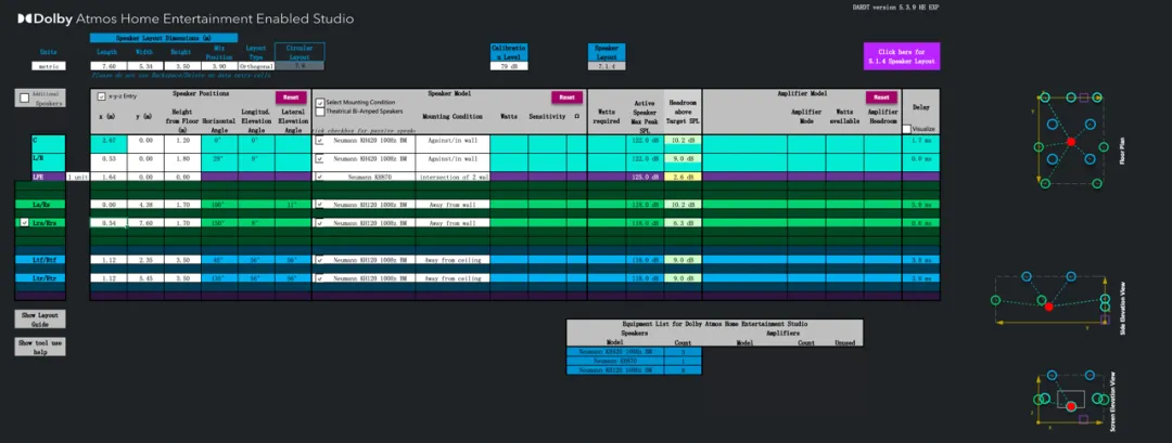 ▲Dolby Audio Room Design Tool(DARDT)計算結(jié)果截圖