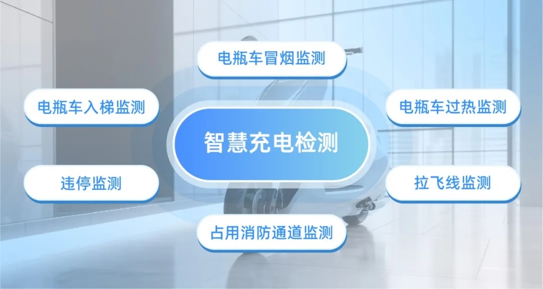 通過大數據模型研判分析,項目實現充電安全風險管控精準化、前置化。在電梯等運營場所,加裝智慧阻車系統,基于視頻AI分析技術禁止電動自行車違規停放及上樓;在充電區域,通過智慧充電檢測技術和熱成像感溫技術,對充電車輛電壓、電流、溫度、故障電弧等情況進行實時檢測,出現安全隱患實時聯動報警,及時應急處理。