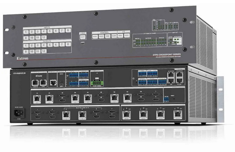 Extron發布全新DTP3系列——輸入/輸出可配置型一體機,這在業界完全是一個創新。DTP3一體機擁有高性能HDMI和DTP3視頻輸入和輸入接口,內置帶AEC和Dante的音頻處理器,功放和中控。完全能夠解決空間內的音視頻傳輸、路由、分配、處理和控制問題。這里特別值得一提的就是可配置的DTP3輸入/輸出接口,可以讓一體機在不同的項目中適應不同的矩陣切換需求。