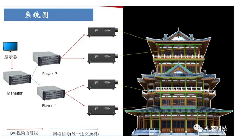 而在建筑投影秀的制作過程中,技術大咖們也發揮了自己的創意和想象力。他們使用先進的投影設備,將歷史場景和人物影像制作得栩栩如生。通過精準的投影和燈光控制,他們能夠營造出令人驚嘆的視覺效果。比如,當投影秀中的歷史人物揮舞兵器時,燈光會隨之變幻,營造出逼真的戰斗場景;當投影秀中的古代建筑物展現出輝煌的時刻,燈光則會以璀璨的光芒點亮整個夜晚。這種燈光與投影的巧妙結合,讓我們仿佛置身于一個神奇的歷史劇場,享受著視覺盛宴。