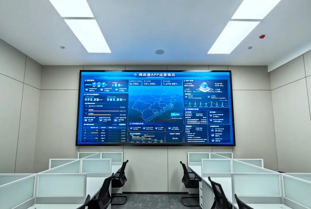 數據分散、整合困難曾是政務服務實際操作中的一大難題。福建省大數據集團通過引入總面積約100㎡的雷曼COB超高清節能冷屏,將海量數據匯聚一屏,集中控制、處理各類信息,不僅提升了政務服務效率,還節省了日常運營成本。