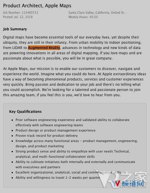 (其它) > 招聘信息顯示蘋果正在研發AR地圖